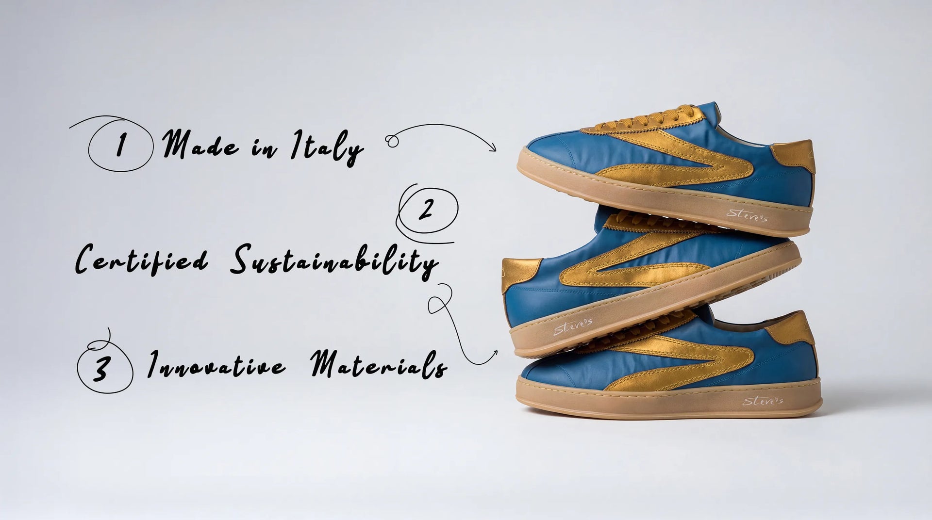 Steve's was founded in 2022 by Giulia and Filippo with a simple idea: no longer choosing between style and sustainability. We create Made in Italy sneakers, where beauty and innovation coexist in every detail. Wearing Steve's means experiencing a new concept of luxury: less ostentation, more quality. More care. More meaning.